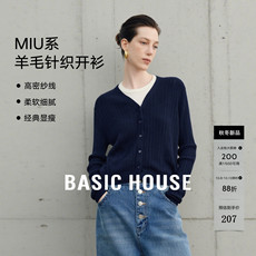 HM女装毛针织衫秋季慵懒舒适打底衫短款开衫薄款外套0579541