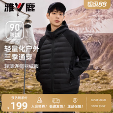 雅鹿轻薄羽绒服男连帽短款2025冬季新款运动针织拼接轻便保暖外套