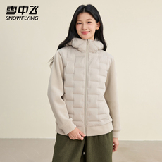 雅鹿轻薄羽绒服女短款2025新款时尚休闲卫衣运动拼接针织保暖外套