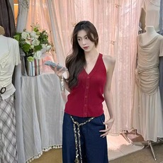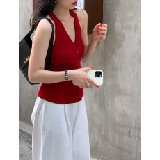红色V领冰丝针织吊带背心女夏外穿2025新款修身短款无袖开衫上衣