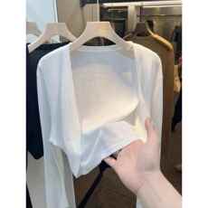 白色冰丝防晒针织开衫女夏季薄款吊带裙外搭空调衫小个子短款上衣