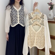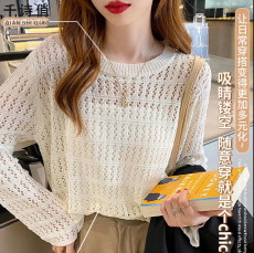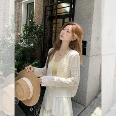 百搭勾花镂空长袖针织开衫女2025年夏季新款防晒罩衫披肩短款上衣