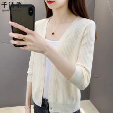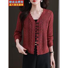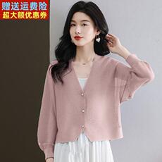 针织衫女士长袖开衫薄款V领春夏季新款外搭上衣洋气短款防晒外套