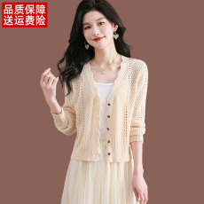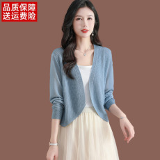 桑蚕丝针织开衫薄女短款外搭夏季配裙子小披肩大码镂空防晒空调衫