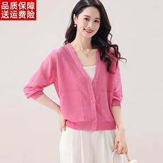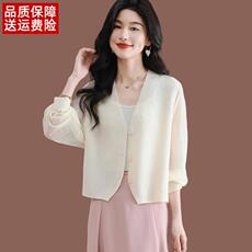 桑蚕丝薄开衫女短款小披肩外搭镂空配裙子小坎肩针织衫妈妈装夏季