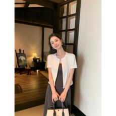 pusumede 弹力针织短袖T恤女夏季修身开衫休闲气质外搭短款上衣
