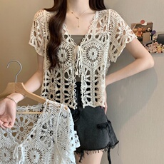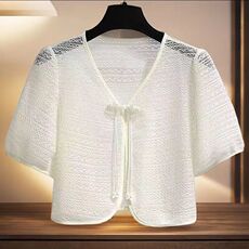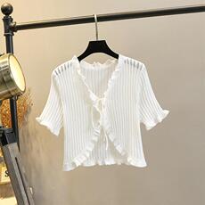 半袖冰丝开衫针织衫女短款镂空小披肩薄款外套夏坎肩空调衫小外搭