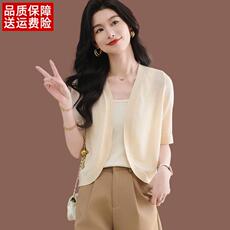 冰丝针织短袖开衫女夏季新款时尚短款配裙子外搭薄款披肩防晒上衣