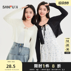 三福开衫2025夏季系带设计短款圆领针织披肩外套上衣女装500358