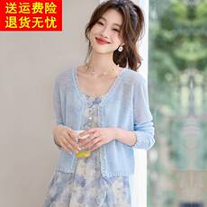 冰丝针织开衫女夏季新款时尚短款宽松配裙子上衣薄款披肩防晒外搭