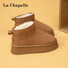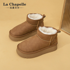 拉夏贝尔厚底雪地靴女2025新款冬季皮毛一体短筒加绒加厚保暖棉鞋
