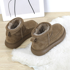羊毛雪地靴女2024新款冬季厚底短筒加绒加厚防滑皮毛一体面包棉鞋