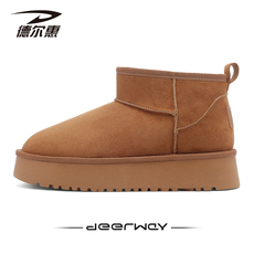 德尔惠雪地靴女款2025新款冬季时尚经典纯色厚底保暖休闲短筒棉鞋