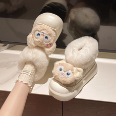 可爱卡通狐狸保暖加绒雪地靴女2025秋冬新款短筒厚底防滑东北棉鞋