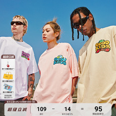 悟空有货美式纯棉字母印花短袖t恤男女夏季潮牌宽松休闲圆领体恤