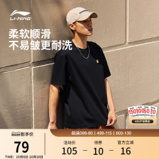 李宁短袖男士夏季官方半袖简约情侣装黑色体恤纯棉白色运动T恤女