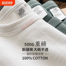 三本针500G重磅纯棉纯色短袖T恤男女同款内搭上衣大码半袖t恤高级