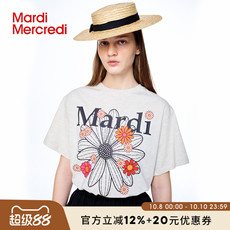 MardiMercredi小雏菊多花字母短袖t恤宽松韩系半袖上衣女夏季新款