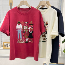 夏季女士纯棉薄款短袖T恤韩版洋气减龄百搭大码宽松显瘦印花上衣