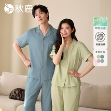 秋鹿[雪糕棉]柔滑垂坠凉感透气抑菌睡衣女夏季短袖情侣男款家居服