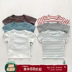 夏季儿童纯棉时尚条纹短袖男孩女童百搭T恤宝宝上衣薄款休闲服潮