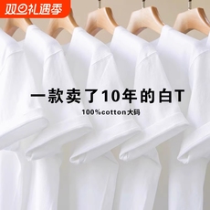 400g重磅纯棉短袖t恤男女款上衣体恤夏季白色圆领宽松半袖打底衫