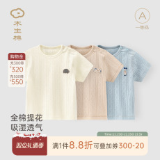 木生棉 男女宝宝短袖上衣夏季薄款婴儿纯棉透气T恤衫网眼可爱夏装
