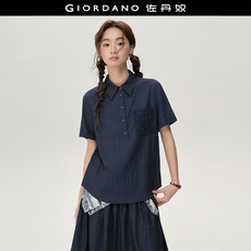 设计师款佐丹奴宽松娃娃衫女新款纯棉格纹日系短袖衬衫女18345211