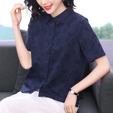 2025夏新款提花短袖衬衫女上衣翻领亲肤透气高端莱赛尔显瘦棉衬衣