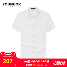 佐丹奴衬衣女款夏季新款通勤纯棉府绸休闲紫色短袖衬衫女05345460