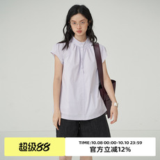omont蛋挞家 小飞袖立领短袖衬衫女夏季新款复古宽松显瘦紫色上衣