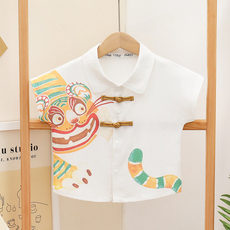 男童国风上衣儿童短袖衬衫纯棉2025新款女童宝宝老虎新中式汉服