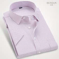 伯曼短袖衬衫男士夏季休闲修身韩版寸衣服潮流百搭中年条纹衬衣
