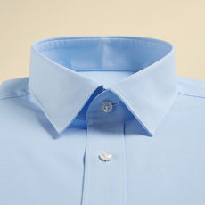 乔治白夏季薄款男士短袖衬衫尖领蓝白格子衬衣柔软休闲修身上衣