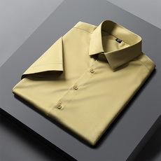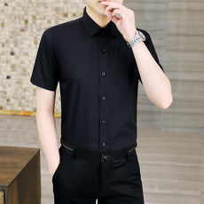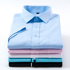 品牌清仓衬衫 春夏薄款男士休闲短袖衬衫纯色无痕商务修身衬衣男
