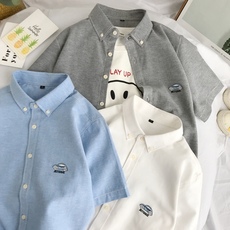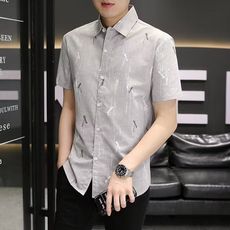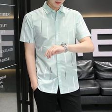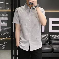 夏季新款短袖衬衫男士韩版修身潮流衬衣男装休闲帅气上衣