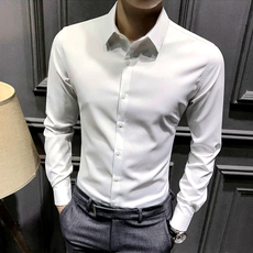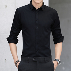 白色衬衫男长袖修身春秋季韩版潮流男士商务短袖衬衣百搭纯色帅气