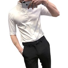 夏季新款立领衬衫男短袖韩版修身潮流休闲帅气七分袖中袖白衬衣