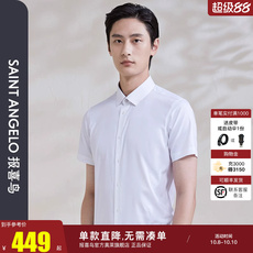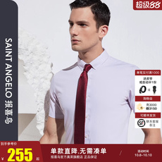 报喜鸟2025夏季新款男士时尚正装白色短袖衬衫钻扣纯色男修身衬衣