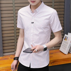 衬衫男士韩版修身夏季短袖衬衣七分袖潮流竖条纹百搭帅气青年外套