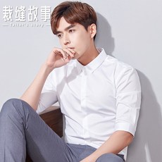 短袖衬衫男士夏季修身商务职业正装衬衣白色面试新郎结婚礼工作服
