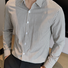 【香港·型仕格调】竖条纹休闲衬衫男士高级感修身夏季时尚短袖