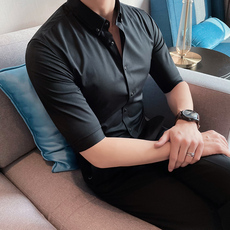 2023夏季新款 英伦免熨烫七分袖衬衫男士短袖衬衫中袖休闲修身上