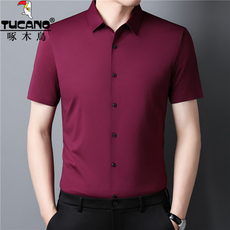 啄木鸟夏季薄款无痕冰丝短袖衬衫男中年爸爸商务休闲弹力免烫衬衣
