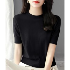 T恤短袖女士外穿可内搭超细针织羊毛衫简约洋气半高领中袖打底衫