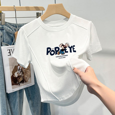 纯棉卡通印花短袖T恤女夏季新款洋气修身显瘦短款百搭上衣潮