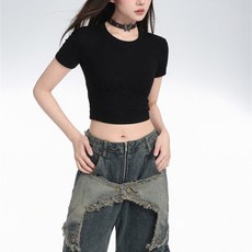 凤冰巧纯棉短袖t恤女圆领新款上衣服短款夏季修身设计感别致辣妹
