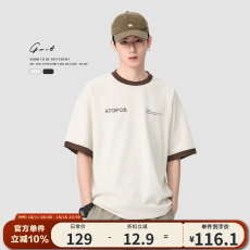 GWIT 美式重磅cleanfit撞色夏季体恤半袖潮牌情侣纯棉短袖T恤男