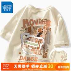JSC{纯棉时代} 260g重磅不透潮流腰果印花t恤夏季圆领短袖男宽松