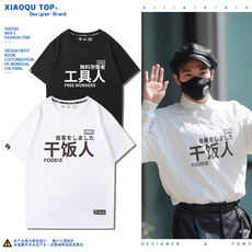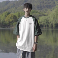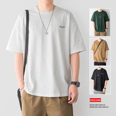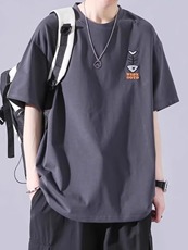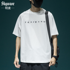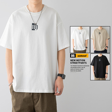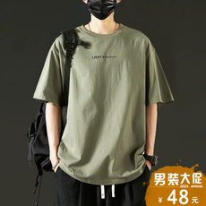 圆领短袖t恤男士夏季宽松日系字母印花男上衣夏款纯棉半袖体恤男